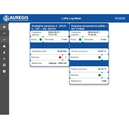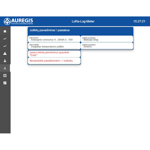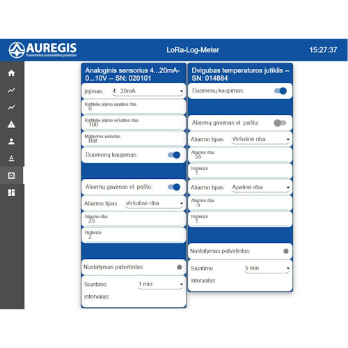 - Galimybė nuotoliniu būdu keisti įrenginių duomenų siuntimo intervalą per interneto naršyklę