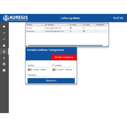 - Pranešimų siuntimas el. paštu ir SMS žinutėmis aliarmo atveju